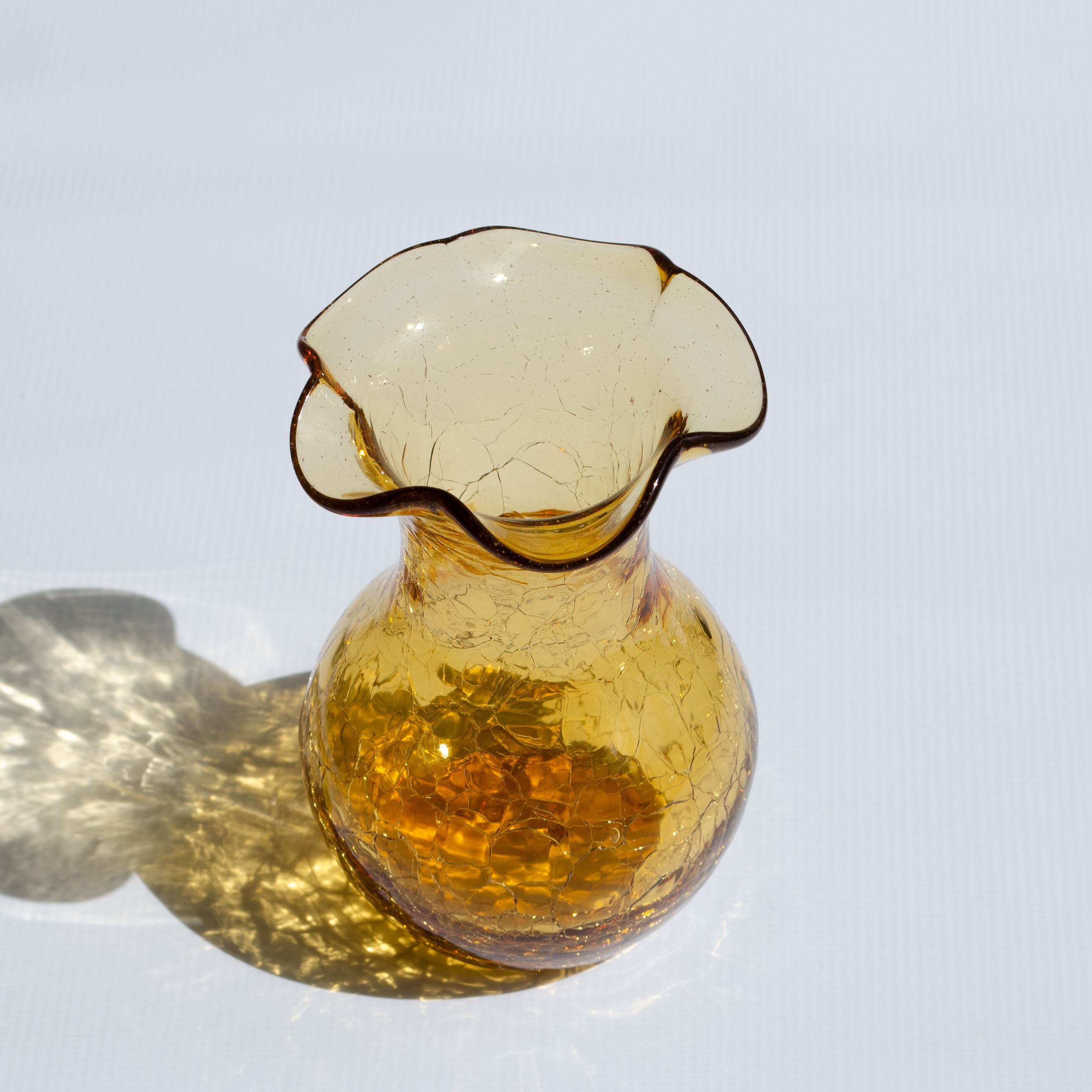 レトロなムードと温かみを感じさせるクラックガラスのフラワーベースです。