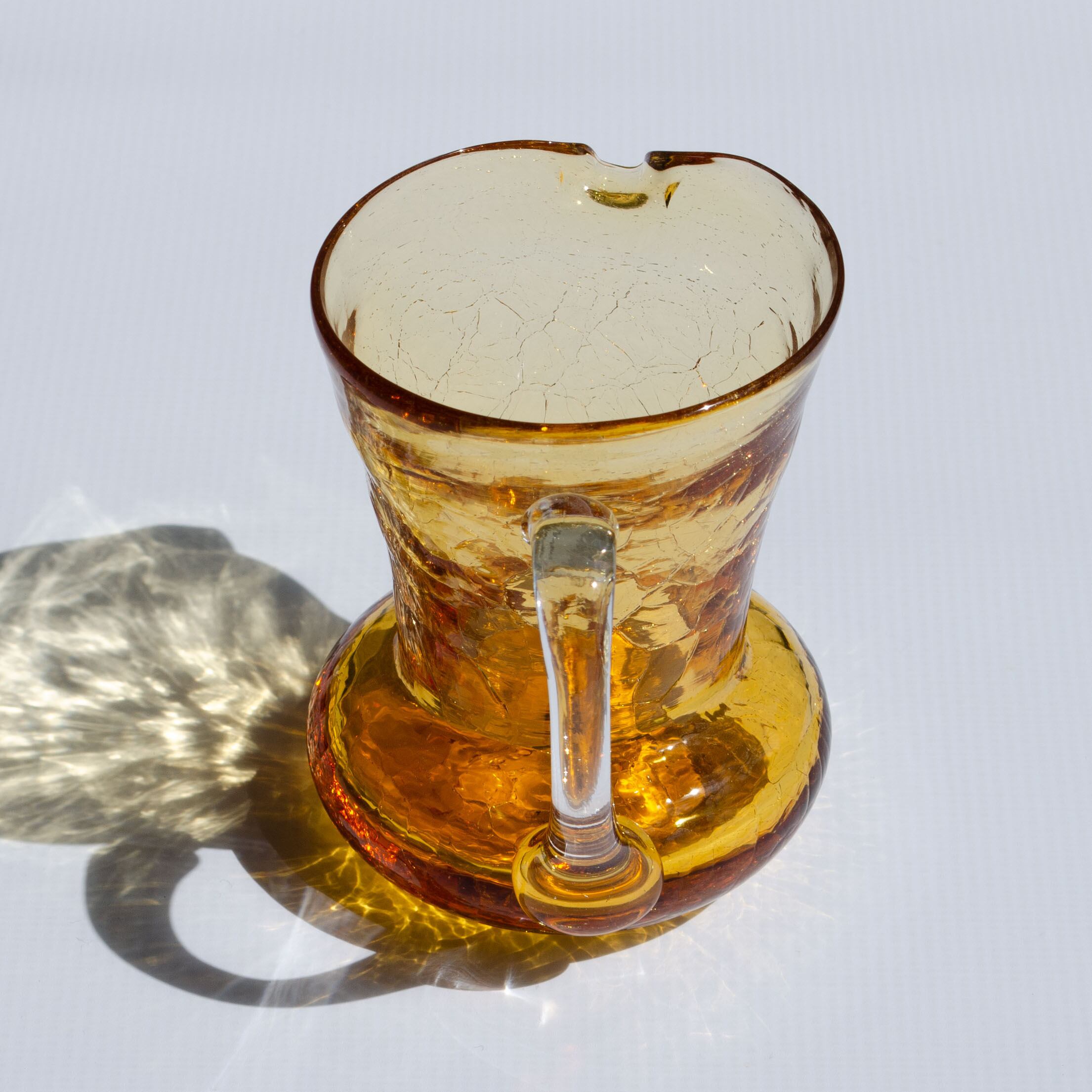レトロなムードと温かみを感じさせるクラックガラスのフラワーベースです。