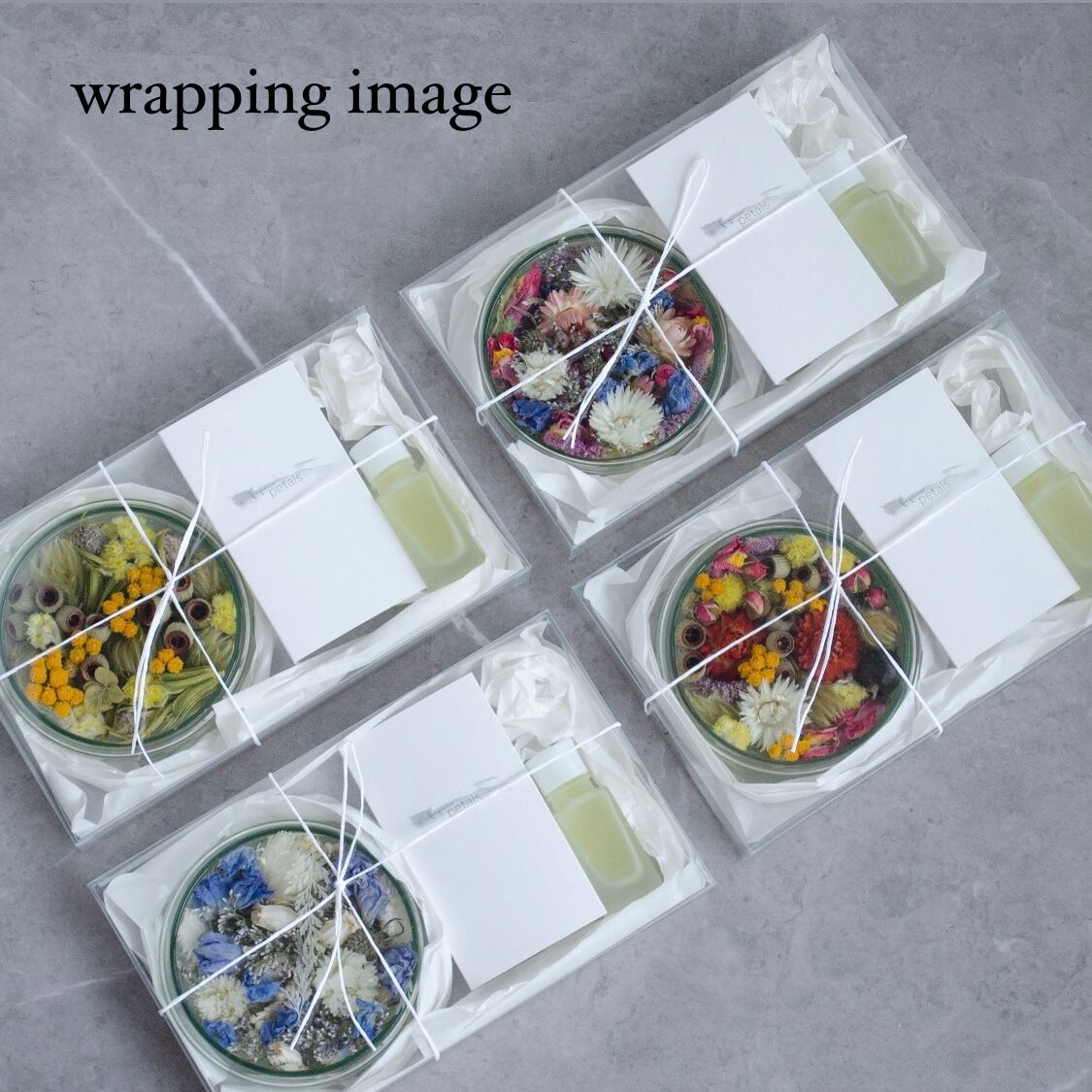 写真のようにクリアボックスに入れてギフトラッピングしてお届けします。
