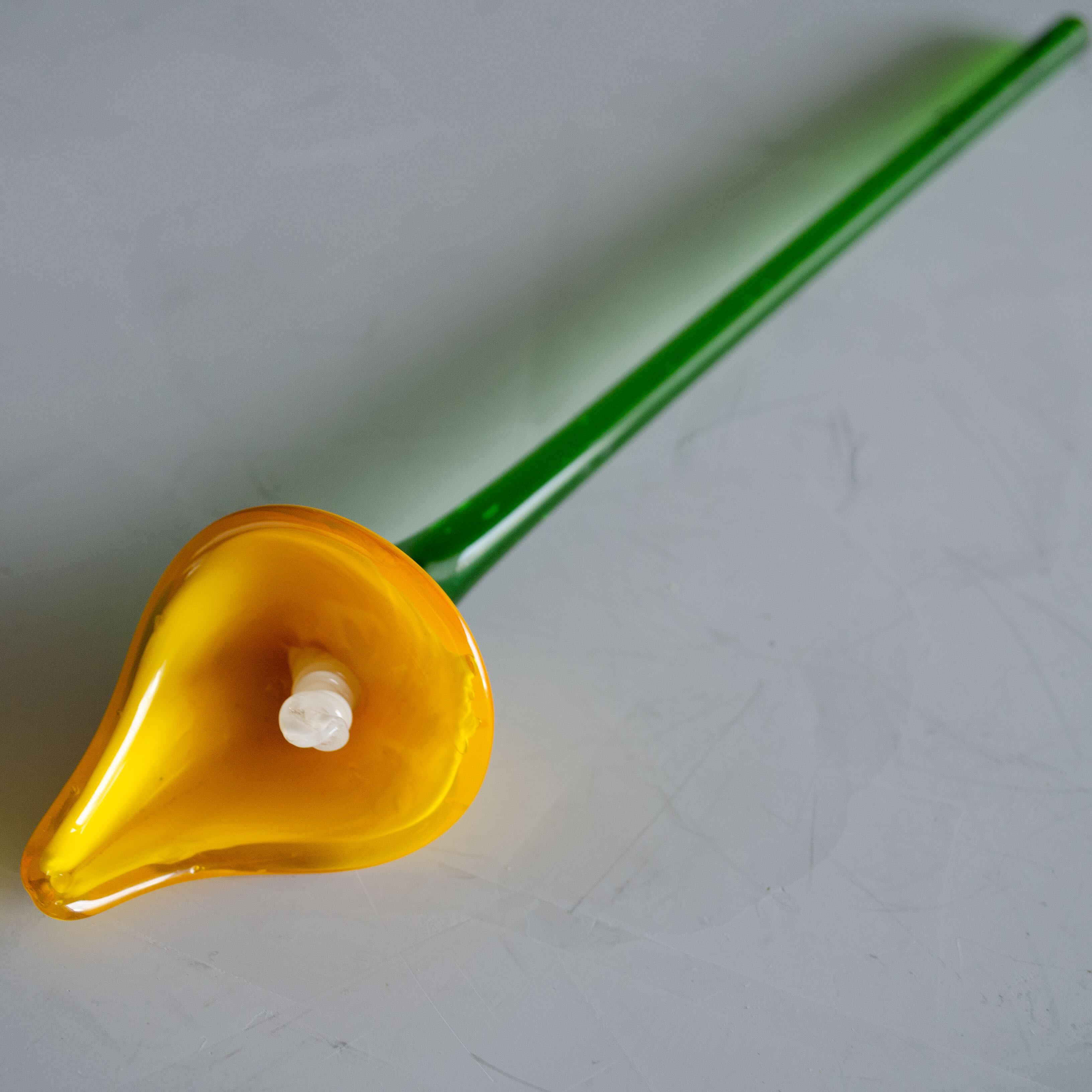 柔らかな曲線のカラーの萼のフォルムがぷっくりとしたガラスで再現されています。