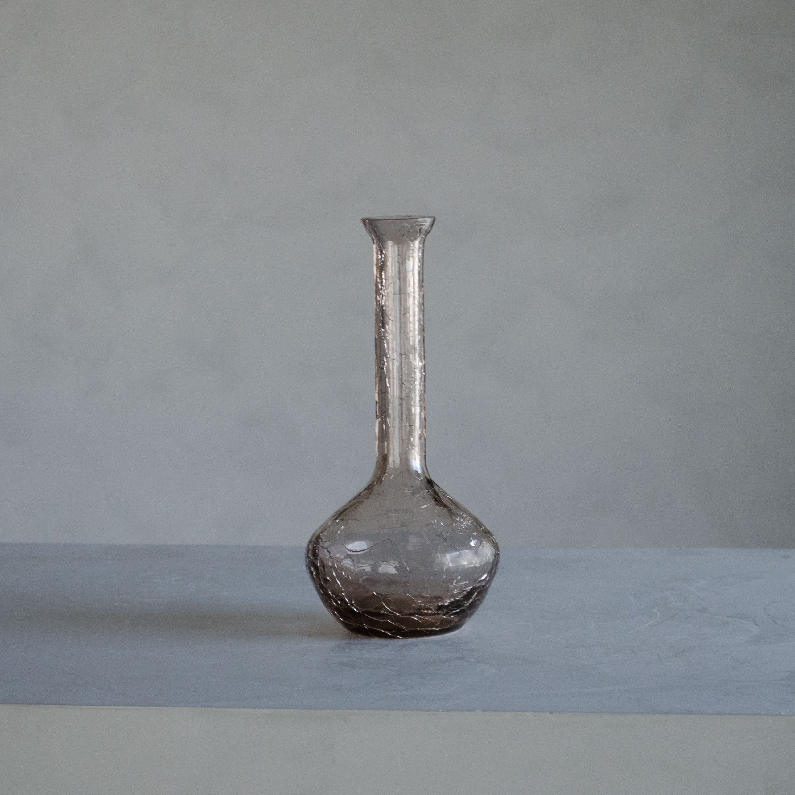 レトロなムードと温かみを感じさせるクラックガラスのフラワーベースです。